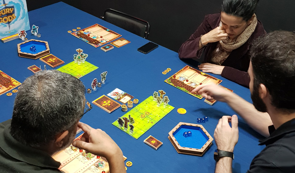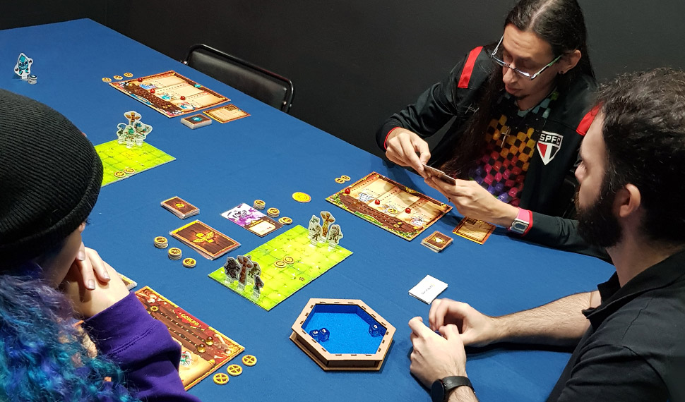 No último sábado (26/05) rolou o 36º Encontro BoardGames São Paulo que estava comemorando seus 3 Anos de existência e para prestigiar esse grande dia, a GAMEHIVES levou mais playtests do Fury of Gods para o evento, incluindo o modo Avançado do jogo que foi um sucesso. Confira as fotos da jogatina.